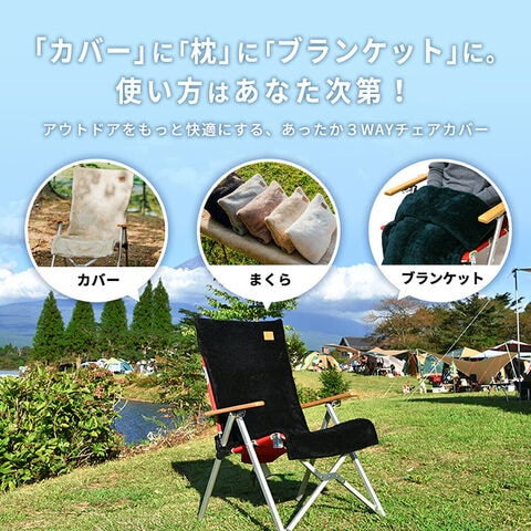 チェアカバー キャンプ 暖かい かけるだけ アウトドア 3WAY 椅子カバー あったか 冬 枕 ひざ掛け ブランケット キャンプ用品 防寒 寒さ対策 エアリーボア グレー ブラック ホワイト ベージュ ブラウン【送料無料】