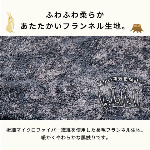 暖かなフランネル生地はふわふわとした心地よい肌触り。どこでもマッチし、心地よい時間を過ごせるシンプルなカラーリング。汚れても洗濯機で丸洗いできるのでお手入れも簡単。