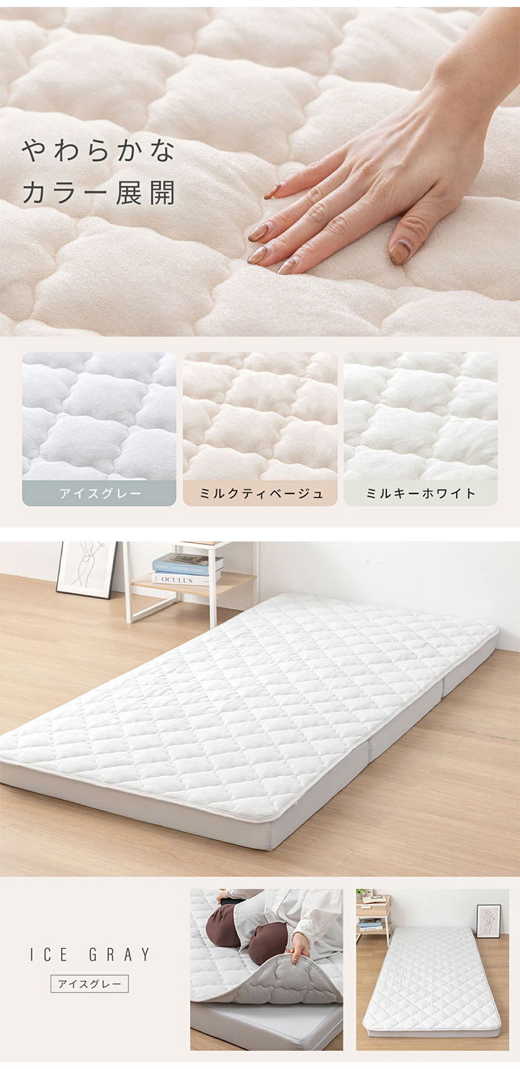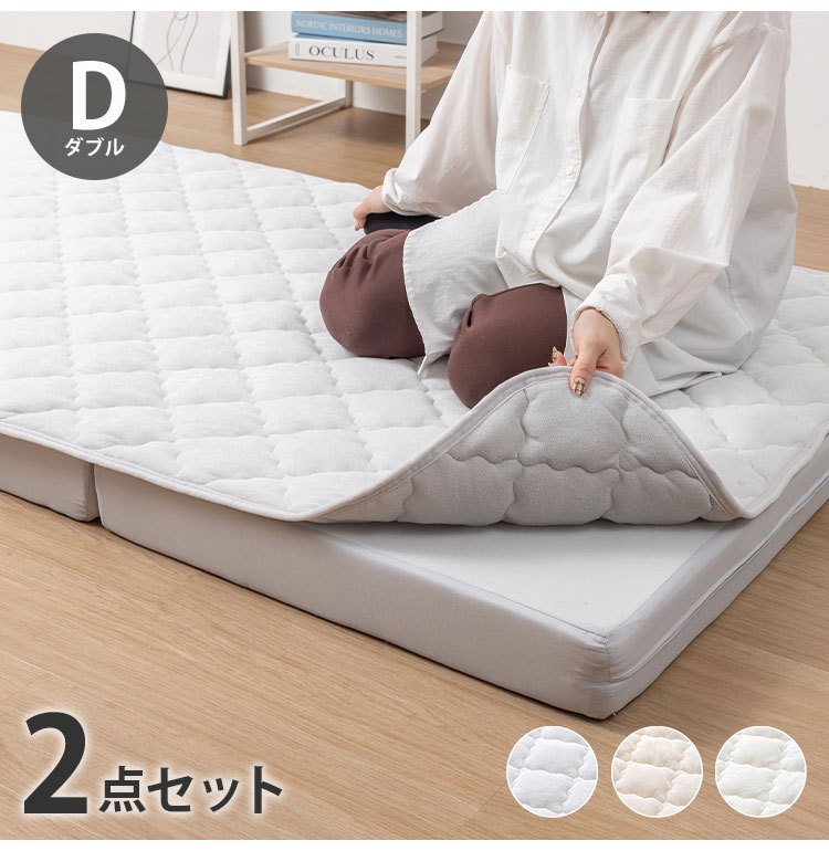 OKU-PITA マットレス+ズレない敷きパッド 2点セット ダブル 絶対にズレない 置くだけ ぴったり ゴムなし ベッドパッド レーヨン パイル 折りたたみ 三つ折り 高反発ウレタン おくぴた【送料無料】