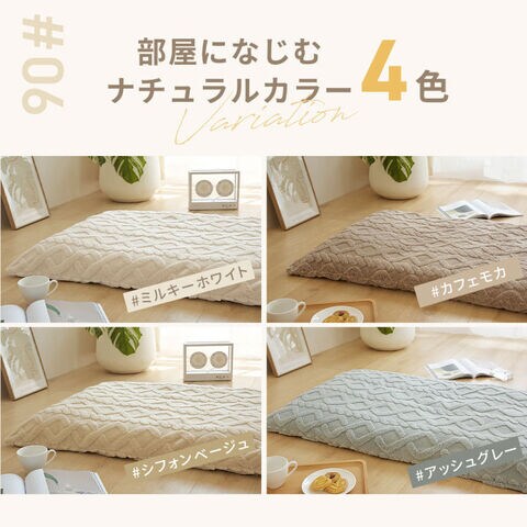 今年の冬のイチオシ、「ケーブルボア」を大胆にあしらったごろ寝カバーが新登場!いつもの部屋に置くだけで、とびっきりの空間に。