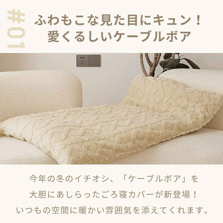 今年の冬のイチオシ、「ケーブルボア」を大胆にあしらったごろ寝カバーが新登場!いつもの部屋に置くだけで、とびっきりの空間に。