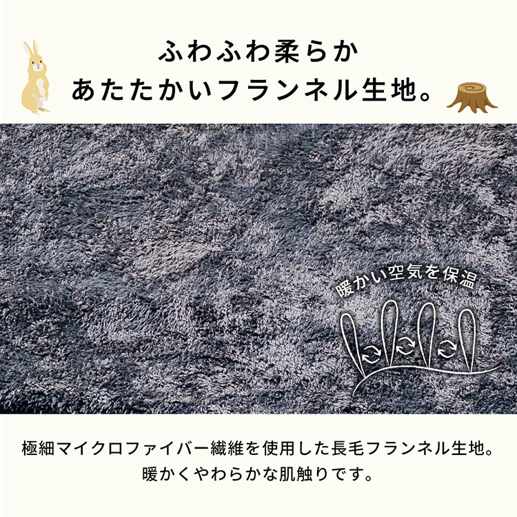 暖かなフランネル生地はふわふわとした心地よい肌触り。どこでもマッチし、心地よい時間を過ごせるシンプルなカラーリング。汚れても洗濯機で丸洗いできるのでお手入れも簡単。