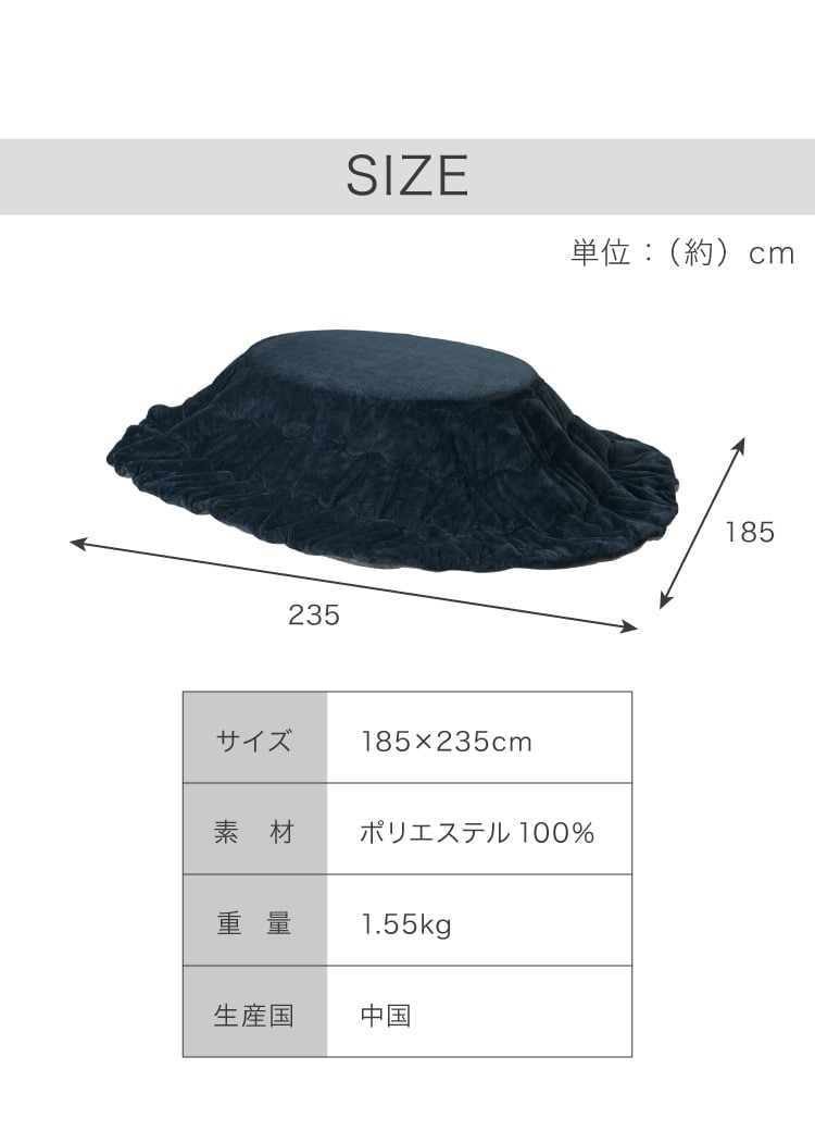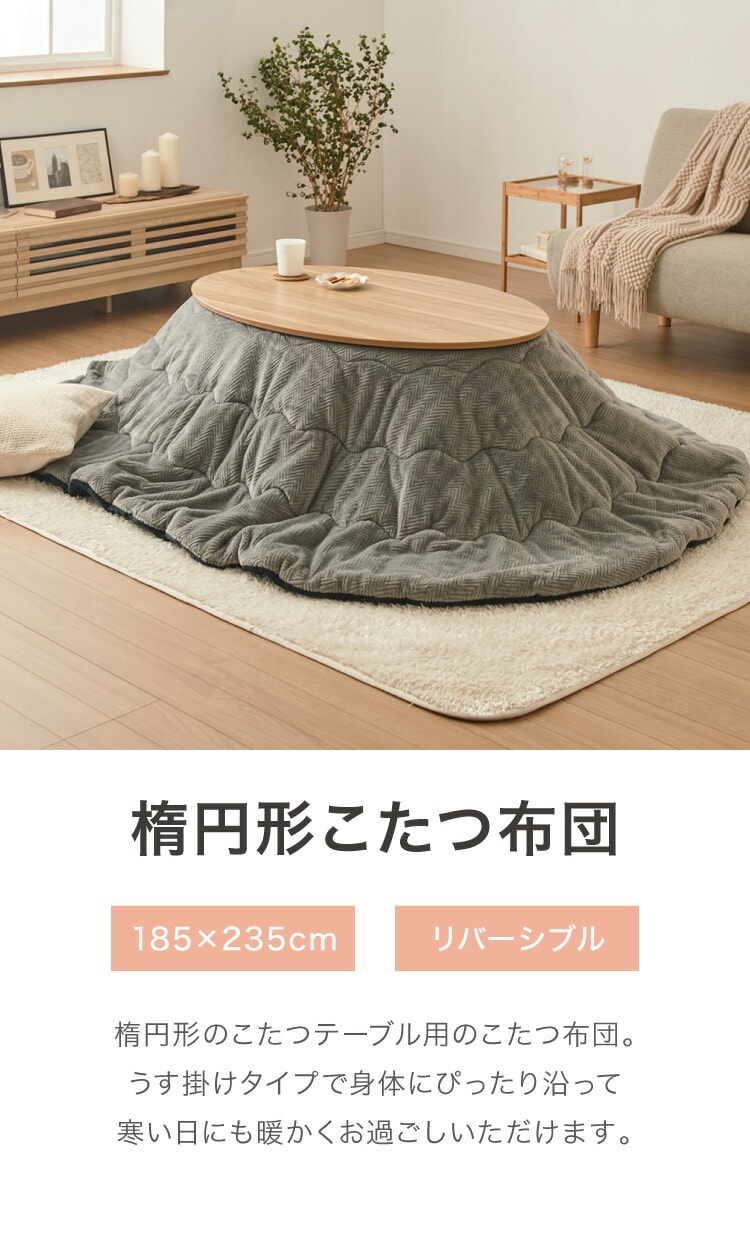 楕円形 こたつ布団 単品 リバーシブル ネイビー グレー 185×235cm シンプル おしゃれ 北欧 かわいい 暖かい 節電 こたつ掛布団 炬燵 新生活 一人暮らし【送料無料】