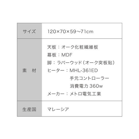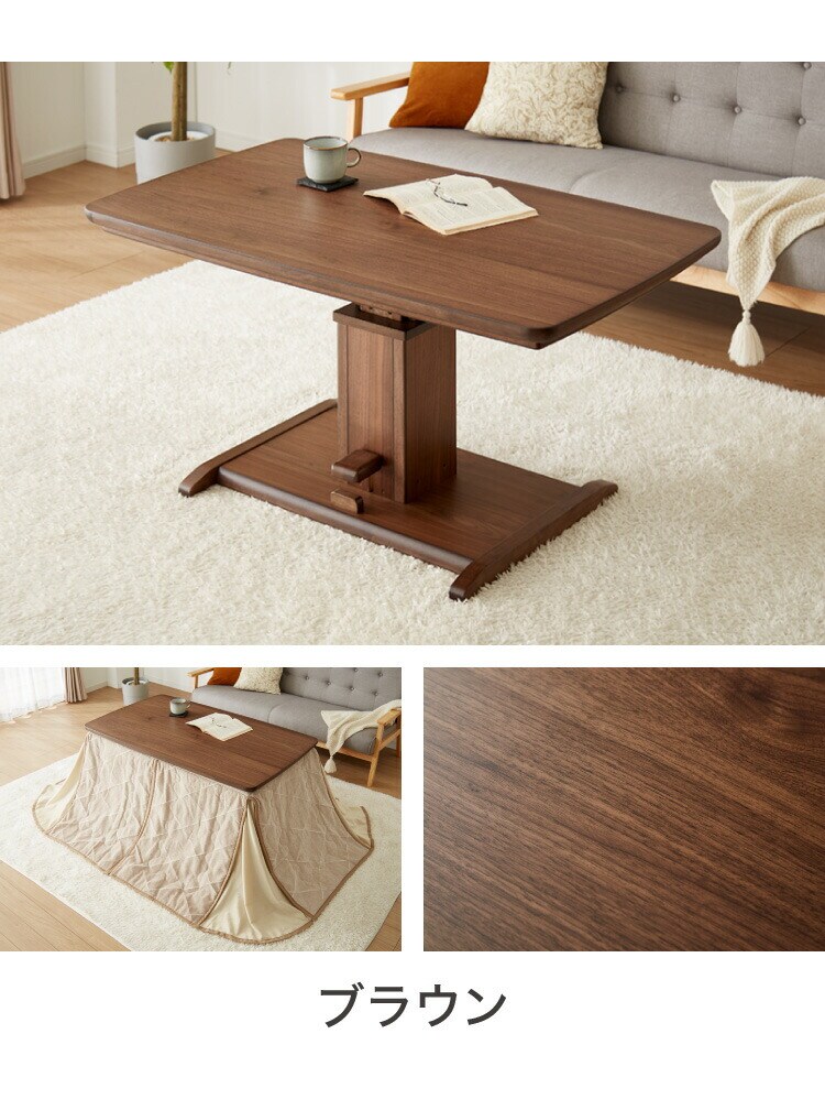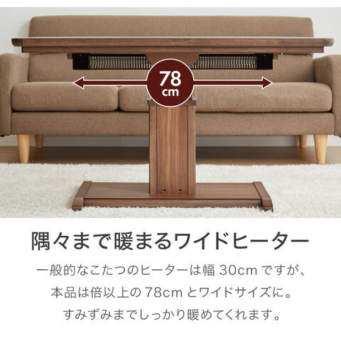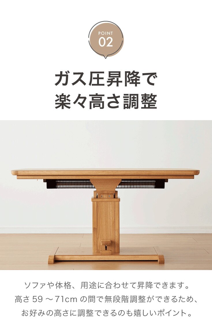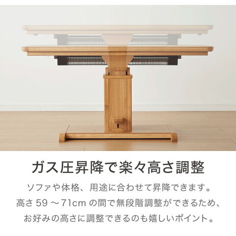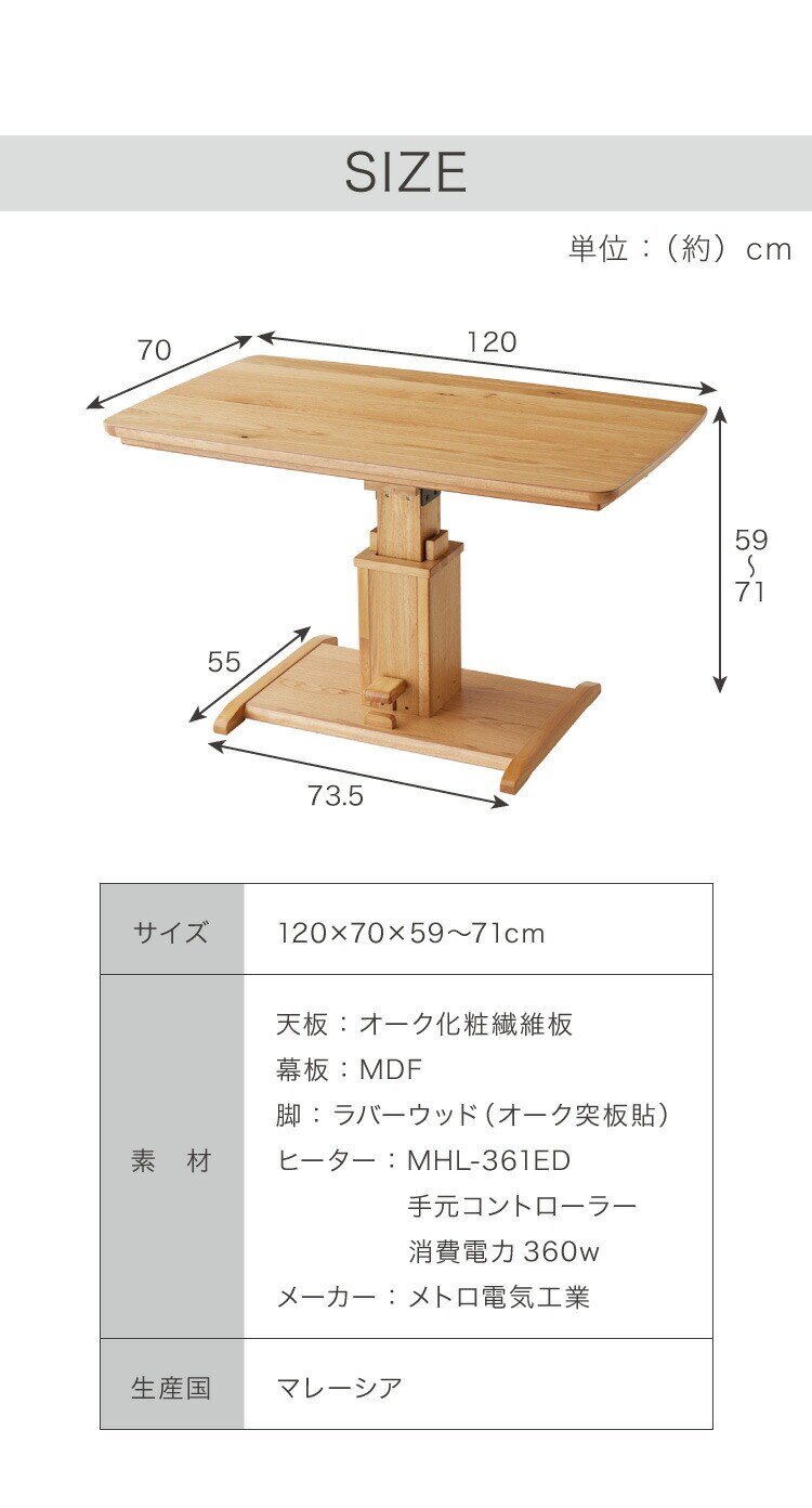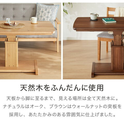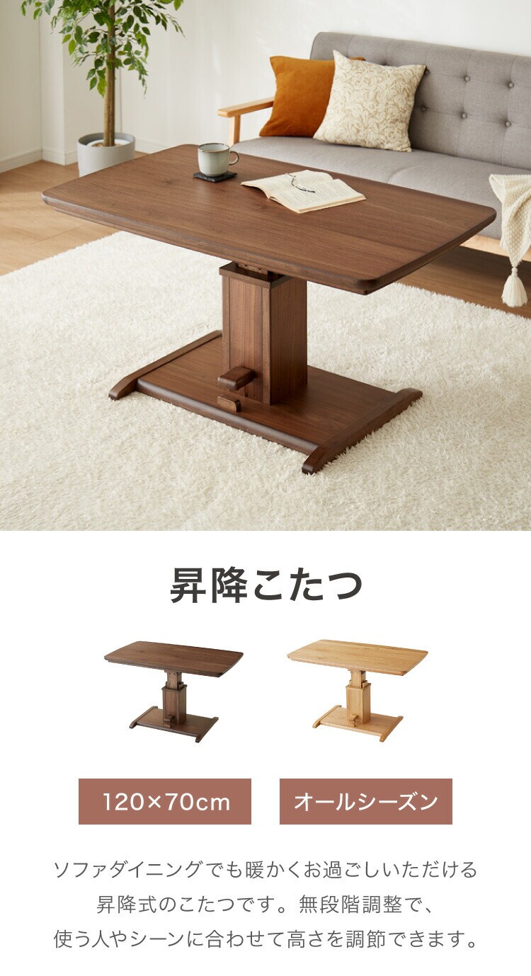 昇降こたつ ガス圧昇降式 幅120cm 単品 長方形 天然木 オーク ウォールナット ハロゲンヒーター 手元コントローラー 高さ調節 ハイタイプ リビングこたつ ダイニングこたつ 昇降テーブル 炬燵 コタツ【送料無料】