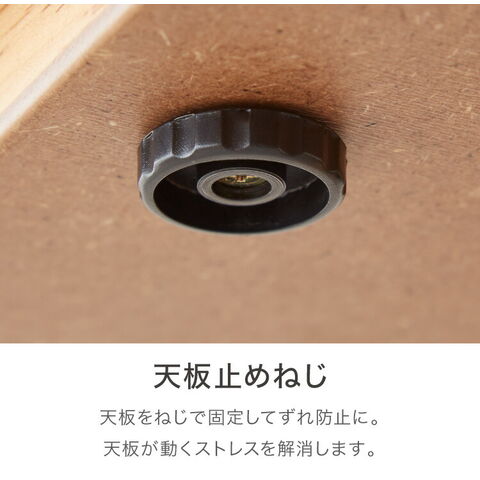 天板に節ありオーク化粧繊維板を使用して、木目を感じることのできる天板になっています。また、脚部にもオーク化粧繊維板を貼り高級感のある脚部にしています。