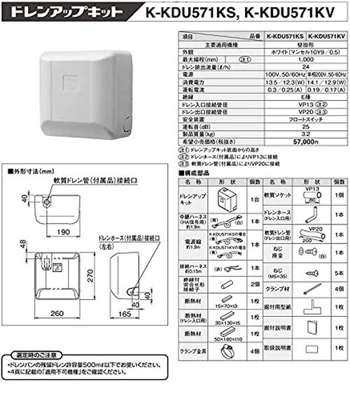 オーケー器材 K-KDU571KV ドレンアップキット 揚程1m 配管スペーサー無し 200V用 : ルームエアコン 壁掛け O.K.KIZAI ダイキン【送料無料】