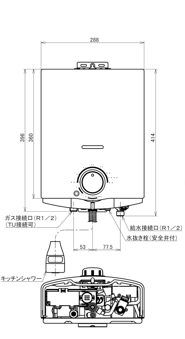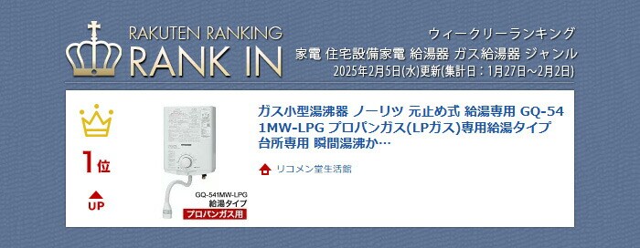 ■品名:ガス瞬間湯沸器 小型湯沸器 台所専用