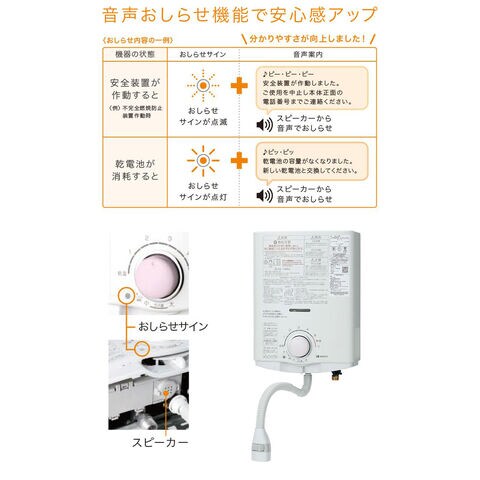 ・音声お知らせ機能搭載。すばやくお湯が使えるので、お台所での洗い物にピッタリ。