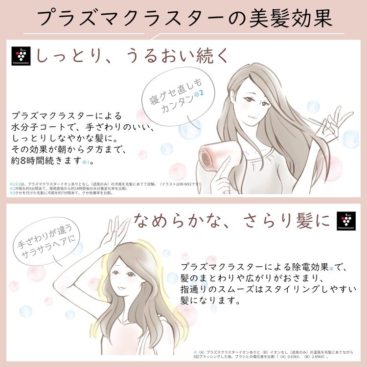 プラズマクラスターを搭載しているので、乾かしながら、髪のうるおい感がアップ。
