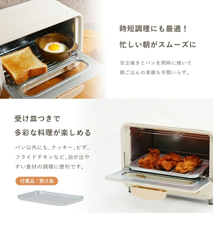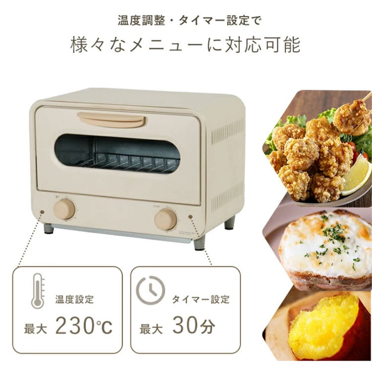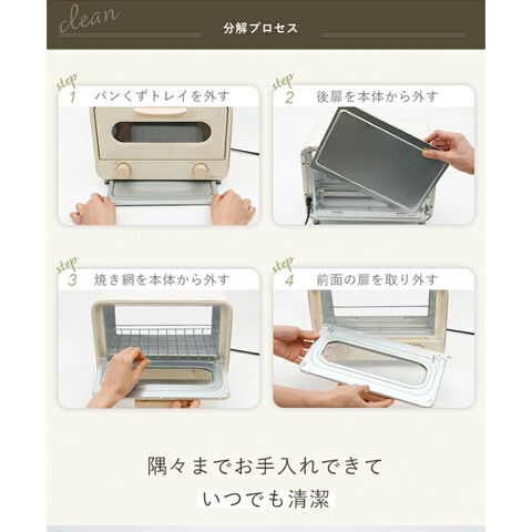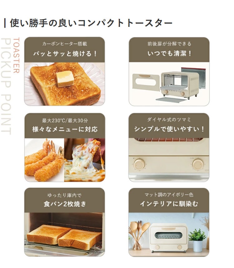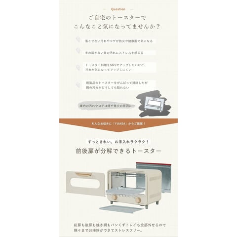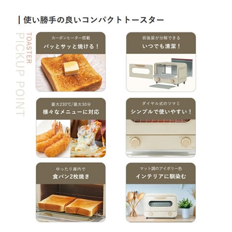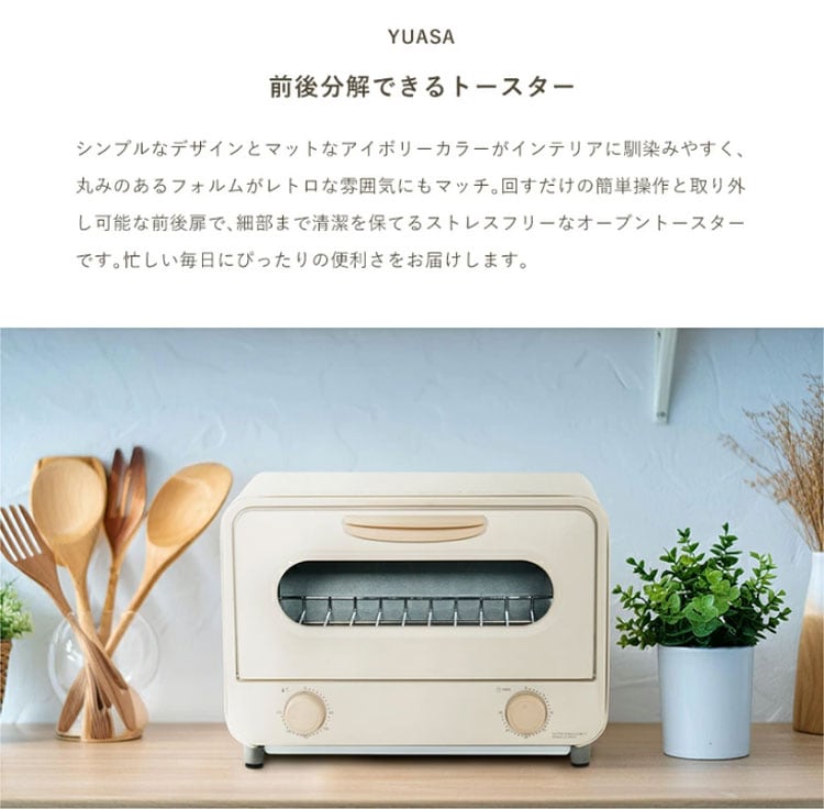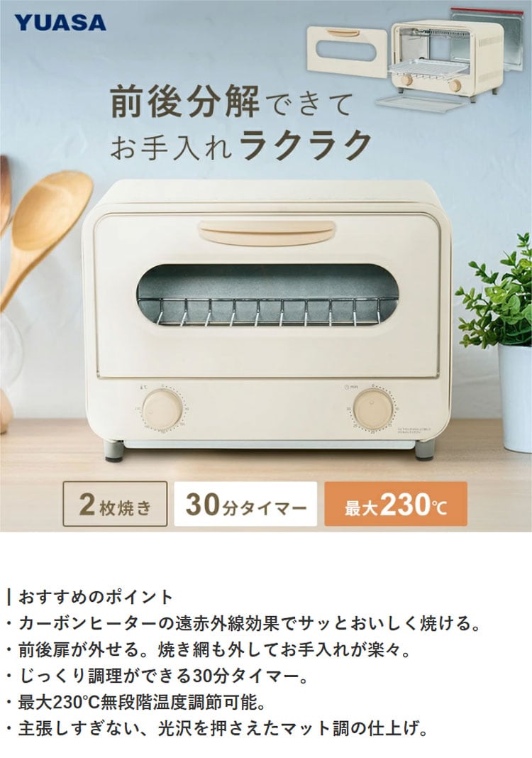 オーブントースター トースター 分解できる ユアサプライムス PTO-TM800F(IV) カーボンヒーター 800W 食パン2枚焼き お手入れかんたん 遠赤外線 無段階温度調節 コンパクト【送料無料】