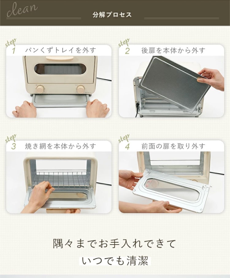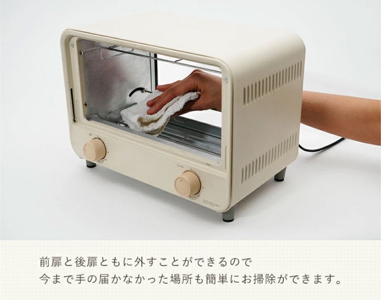 ・前後扉が外せる。焼き網も外してお手入れが楽々。