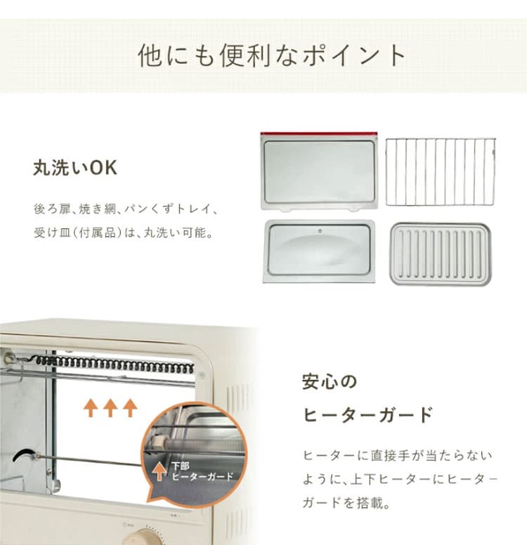 ・カーボンヒーターの遠赤外線効果でサッとおいしく焼ける。