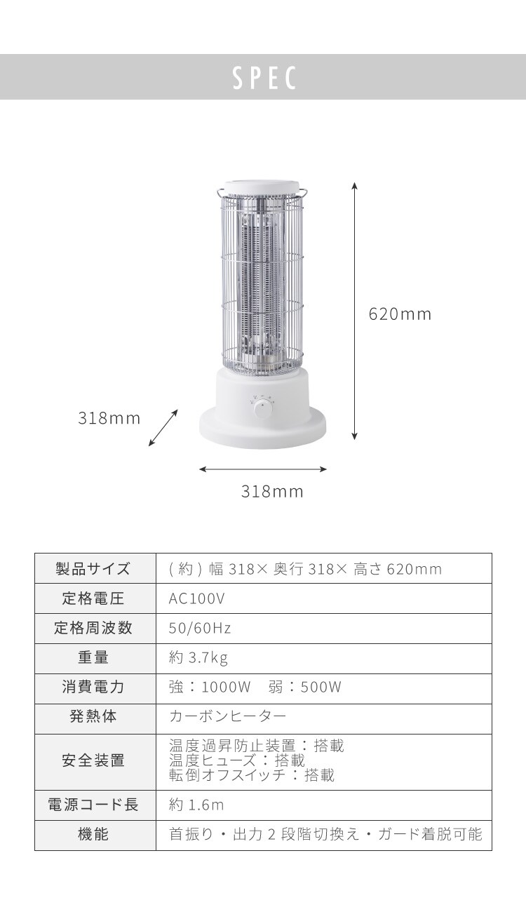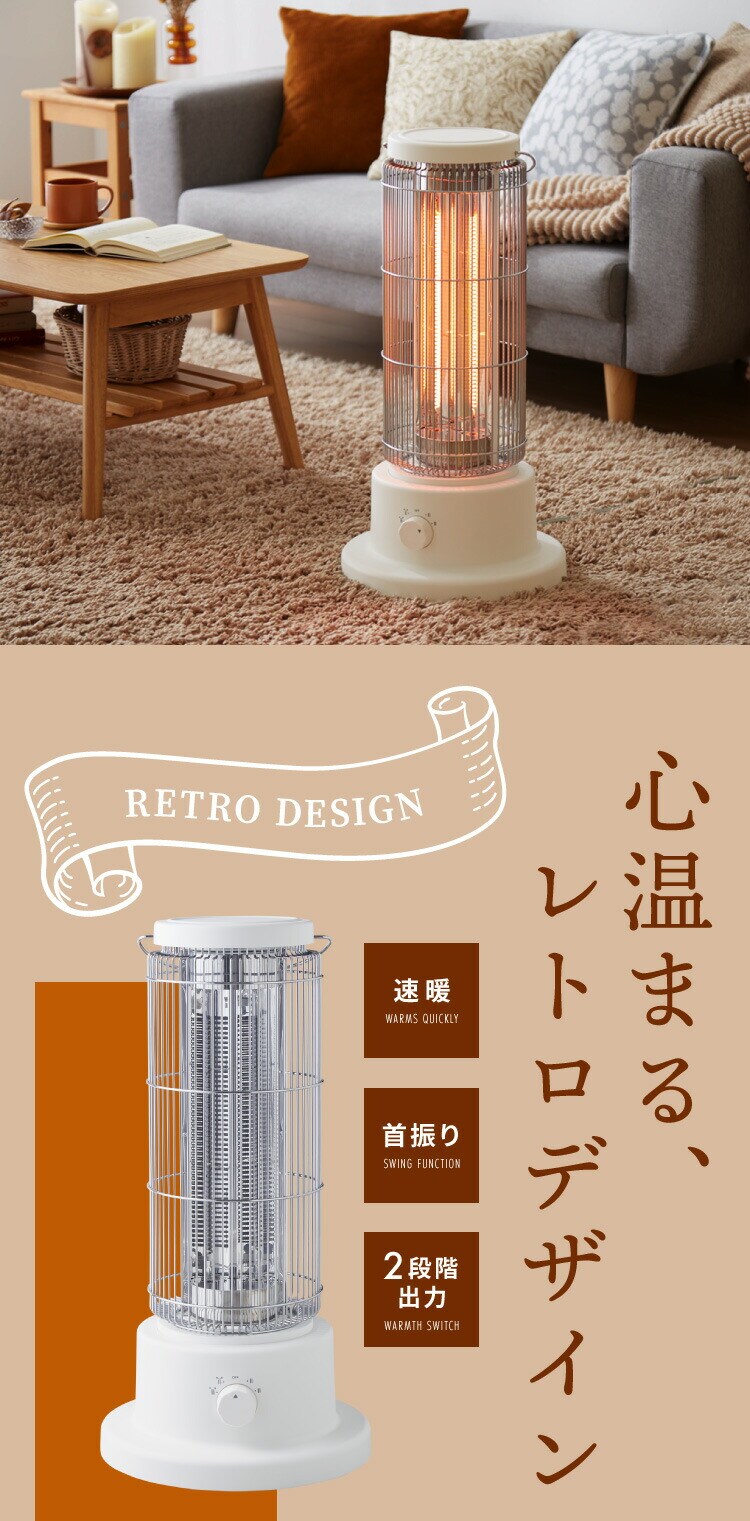 ストーブ風カーボンヒーター 電気ストーブ 首振り カーボンヒーター おしゃれなレトロ調 速暖 遠赤外線 ストーブ 暖房 ヒーター ホワイト 1000W 500W 省エネ【送料無料】