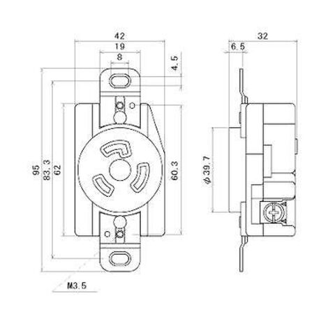 JANコード:4990848284013【仕様】●接地埋込コンセント(L6-20R)●輸出機器専用●定格:20A/250V●適用電線:UL電線・AWG12、11銅単線、より線※圧着端子使用の場合は、UL適合品の先開型圧着端子を使用。●開閉性能(電気用品安全法に基づく)・30A/250V、負荷の力率 約1、開閉回数約10回/分、連続100回●開閉性能(UL498及びCSA22.2に基づく)・30A/250V 開閉100回●絶縁抵抗(500V絶縁抵抗計)・極性の異なる充電金属部間:100MΩ以上(JISは開閉後5MΩ以上)・充電金属部と接地および人の触れる非充電金属部との間:100MΩ以上(JISは開閉後5MΩ以上)●耐電圧・極性の異なる充電金属部間:2000V 1分間・充電金属部と接地および人の触れる非充電金属部との間:2000V 1分間●端子ねじ部強度1.8N・m(18.4kgf・cm)●温度上昇:30K(30℃)以下●接触抵抗:接地極の刃と刃受間 30mΩ以下●引張強度:コンセントとプラグの間 300N(30.6kgf) 1分間●難燃性:UL94V-0に相当●寸法(mm):A-95、B-P83.3、C-60.3、D-62、E-φ39.7、F-42、G-19、H-32、I-6.5、J-M3.5、K-4.5×8楕円●UL取得品:E95917●CSA取得品:LR56620●RoHS対応【ご注意】※取扱説明書をよく読み正しくお取り扱いください。