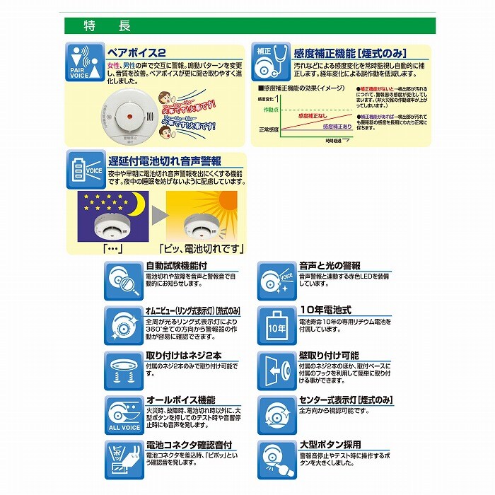 夜中や早朝に電池切れ音声警報を出にくくする機能で夜中の睡眠を妨げないように配慮しています。