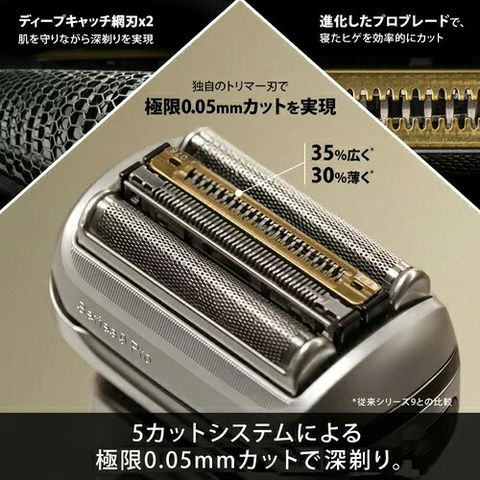 ・圧倒的に緻密に設計された2つのトリマー:緻密に設計されたトリマー。従来シリーズ9より35%広く、30%薄くなったことによりより多くの種類のヒゲを捕らえることを可能にする
