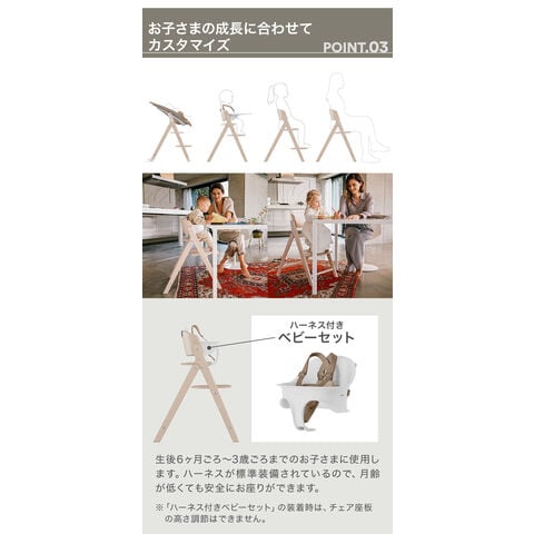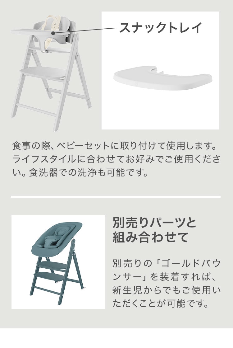 ※ベビーセット、トレイを外せば、チェア単品として大人までご使用いただけます。