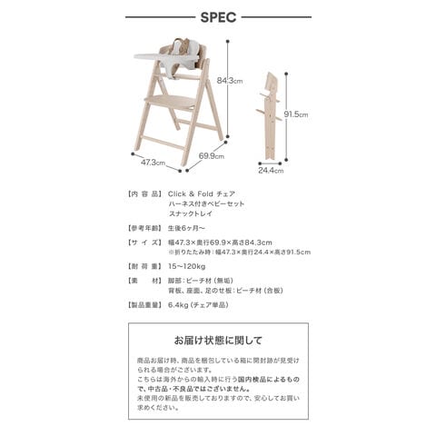 ※こちらはチェア本体/ハーネス付きベビーセット/スナックトレイの3点セット購入ページになります。