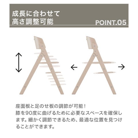 ・お子さまに合わせて座席の深さや足のせ板の調節が可能 など