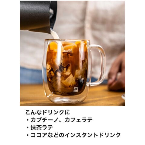 ■牛乳のほか、豆乳やアーモンドミルクにもお使いいただけます。抹茶やココア、インスタントスープなど粉末を加えて混ぜることも可能。