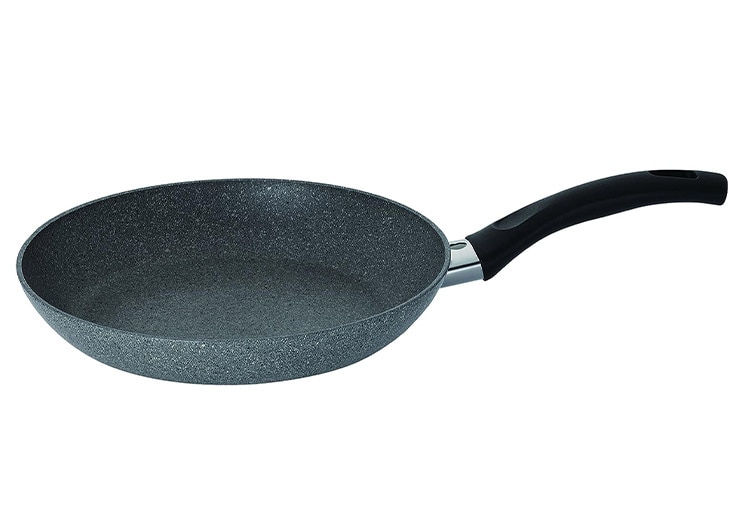 バッラリーニの技術を集結して開発した3層コーティング。耐久性を高めるミネラル(鉱物)を独自技術で配合し、金属ヘラが使えるほどの石のような硬さを持たせました。焦げ付きにくく、調理の快適さが長続きします。