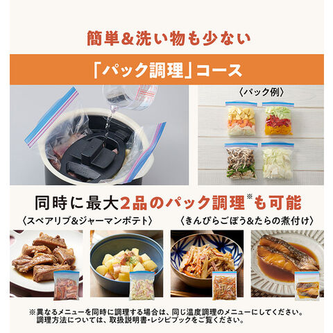 ●洗い物が少なく、簡単に調理できる「パック調理」対応!最大2品同時調理も可能!