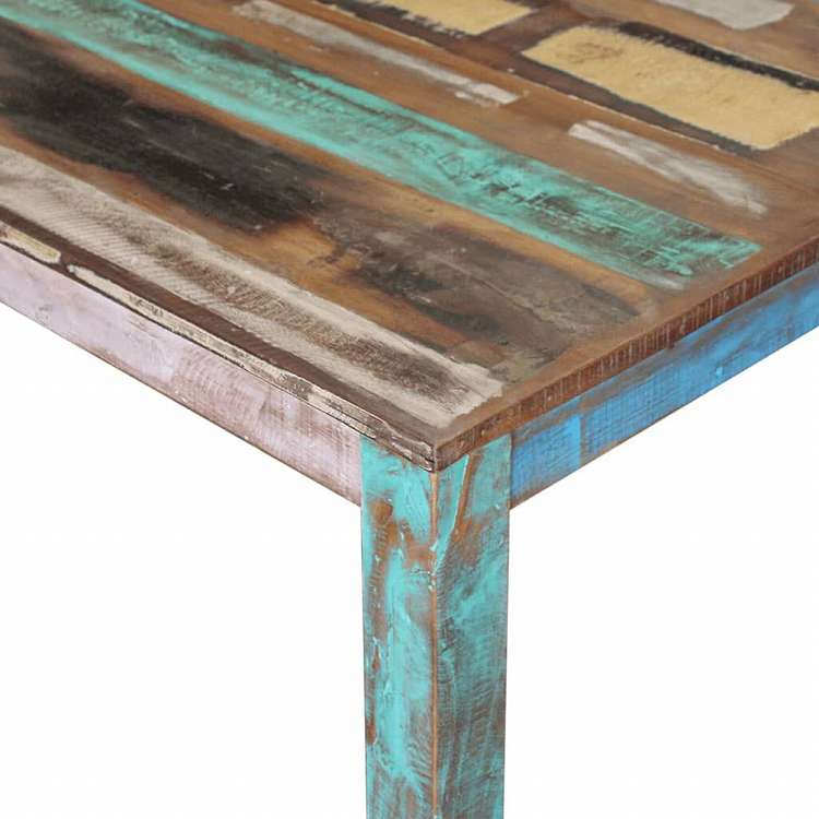 ■キッチンやダイニングを個性的に演出する、アンティーク調の木製ダイニングテーブルです。無垢材を使用しているので、安定感があり、頑丈なつくりになっています。コンパクトなデザインだから、小さめのダイニングルームにぴったりです。ご家族やご友人のために広いダイニングスペースが必要な場合は、このテーブルを複数台、隣り合わせに配置することができます。 このヴィンテージテーブルは、無垢の再生木材を使用して作られています。無垢材ならではの個性的な雰囲気を味わっていただけます。再生木材の家具は、チーク、マンゴーウッド、アカシアなど、さまざまな木材の特徴を備えており、しっかりした安定感をテーブルに与えます。耐久性がありつつも、美しい見た目が魅力的。使い込むほどに風合いが増す、木目の温もりを生かしたデザインです。時代の流れを感じられる、個性的なルックスをお届けします。 ダイニングテーブルは全て手作りで、職人の技がその完全なレトロスタイルに華を添えています。再結合、研磨、塗装、ワックスがけなど、ひとつひとつの工程が丁寧に行われています。 重要事項:色は商品毎に異なり、一点一点が個性を持っています。発送はランダムとなり、商品ごとに一点ものの個性があります。