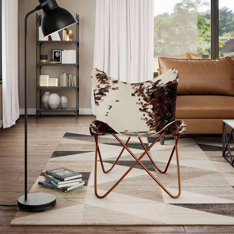 vidaXL バタフライチェア ブラウン&ホワイト 本牛革家具 チェア アームチェア・リクライニングチェア・スリーピングチェア