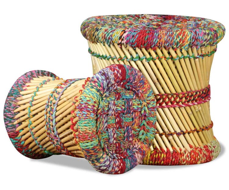 vidaXL スツール 2点 チンディディテール付き 竹製 マルチカラー 家具 チェア 折り畳み椅子 スツール