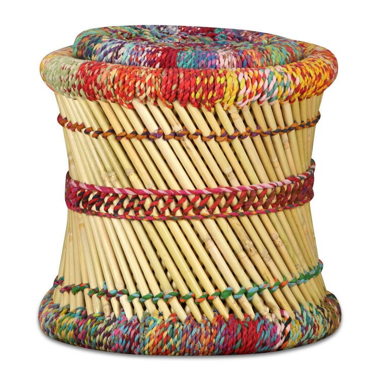 さまざまなサイズのスツールは、スタイリッシュで実用的です。エキゾチックなデザインのフットスツールは、リビングスペースの中心的存在になるでしょう。スツールは、竹に色とりどりのチンディをあしらったもので、自然の魅力にあふれた一品になっています。一日の仕事を終えて足を休めるのにも、サイドテーブルとしてフルーツバスケットや花瓶、飲み物やお菓子など、装飾品を置くのにも適しています。丈夫な鉄製の脚部が、耐久性と安定性を高めています。異なるサイズのテーブル2点をセットでお届けします。