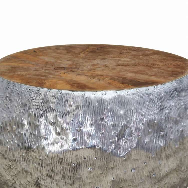 vidaXL コーヒーテーブル アルミ&チーク材 60x60x30cm家具 テーブル アクセントテーブル コーヒーテーブル