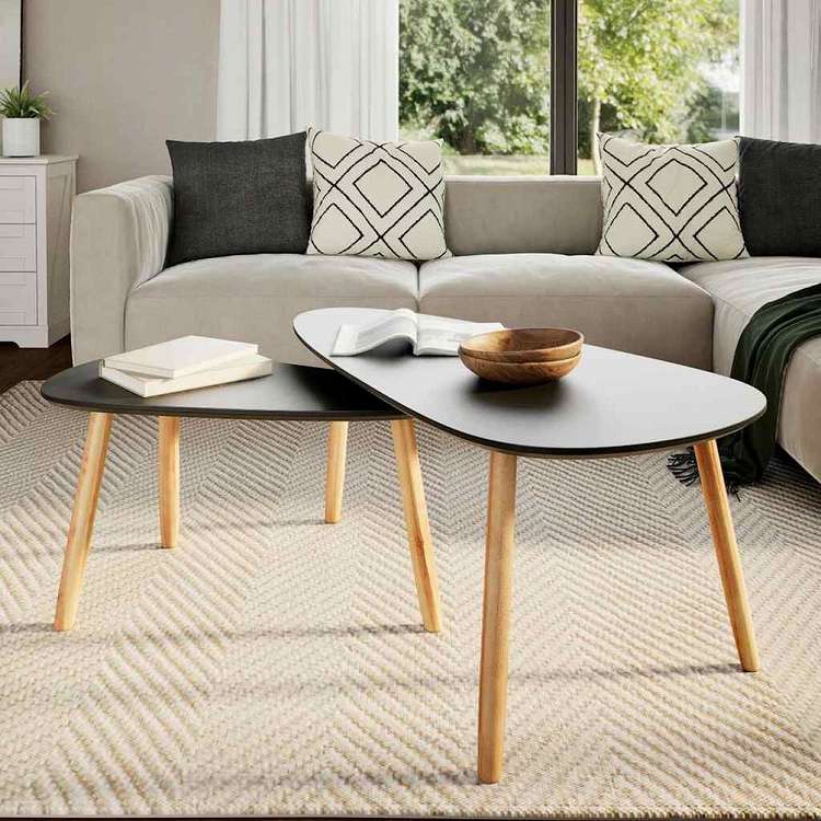 vidaXL コーヒーテーブル 2点セット パイン無垢材 ブラック家具 テーブル アクセントテーブル コーヒーテーブル