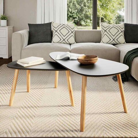 ■スカンディナヴィアンスタイルのチャーミングな魅力を放つ、高品質のコーヒーテーブル。リビングやラウンジスペースをスタイリッシュに仕上げます。 ソリッドパインウッドを使用することで、強度と頑丈さに優れたつくりとなっています。丈夫なMDF製テーブルトップは安定性抜群。飲み物、フルーツバスケット、花瓶、観葉植物用スタンドやお部屋の装飾品等を安心して置くことができます。多用途な省スペース仕様のテーブルセットだから、ナイトスタンド、プランタースタンド、電話台やエンドテーブル等としても大活躍。組み立ても簡単で嬉しい設計。 コーヒーテーブルを2点セットでお届けします。
