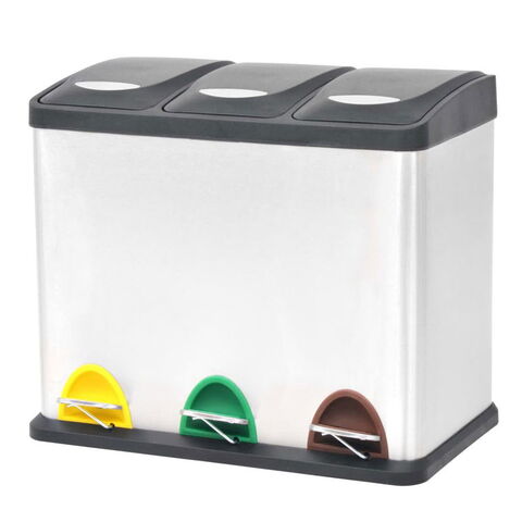 このシックで実用的なペダル式リサイクルビンは、キッチン、リビングルーム、オフィスに1つは絶対に欲しい、必需グッズ。ゴミ箱には、取り外し可能な内バケット3点が付いており、ゴミを分別するために便利です。ペダルを踏むだけと、簡単にふたを開け閉めできる、使い手に優しいデザイン。ペダルの後ろのスロットは色分けされているので、ゴミの分類に役立ちます。本体はマット仕上げのステンレススチール製で、シックなルックスを実現。内バケツ、ふた、ベースは耐久性のあるポリプロピレン(PP)の造りです。ふたは静かに開け閉めするソフトクローズ式で、ぷーんと臭い匂いの広がりをストップ。各内バケットには大きなハンドルがあり、簡単に取り外せ、日々の生活に役立つ設計です。