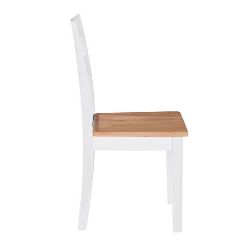クラシックなデザインのダイニングチェアセットは、チェア4点で構成されています。ダイニングルームにぴったりです。丁寧に磨かれた無垢のラバーウッドに、フレームとシート部分のみ、ペイント仕上げを施しました。印象的なカラーコントラストは、シンプルながらスタイリッシュな見た目を強調します。ダイニングチェア4点付き。組み立てはとても簡単です。