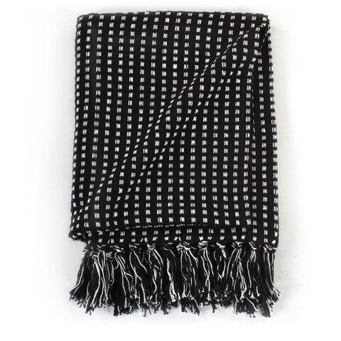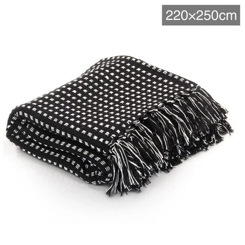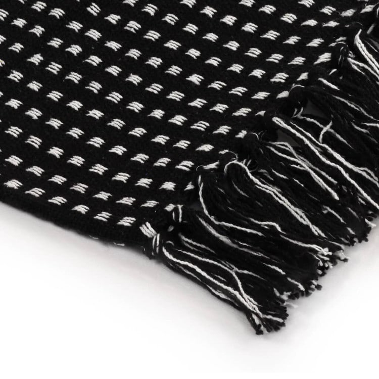 vidaXL スローケット コットン製 スクエア 220x250cm ブラックホーム&ガーデンリネン&ベッドベッドブランケット