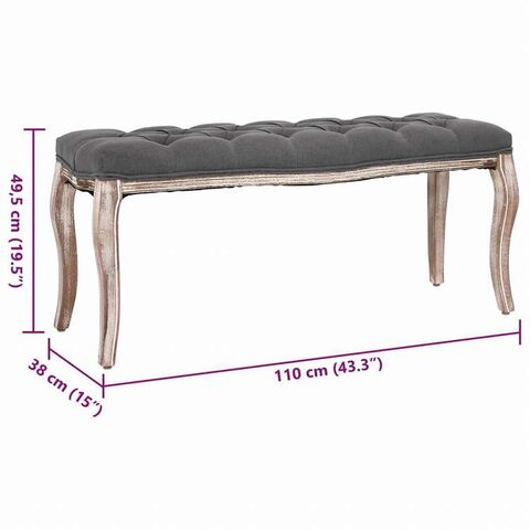 vidaXL ベンチ リネン&無垢材 110x38x48cm ダークグレー家具 ベンチ 倉庫・通路用ベンチ