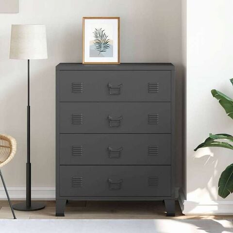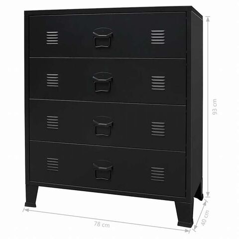 vidaXL 引き出しキャビネット 金属製 インダストリアル調 78x40x93cm ブラック家具 キャビネット&収納 ドレッサー