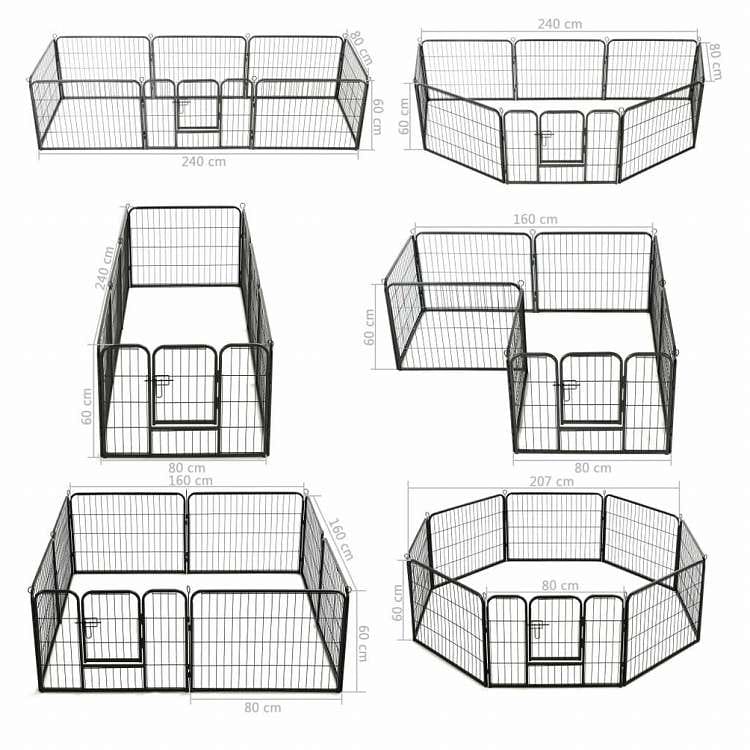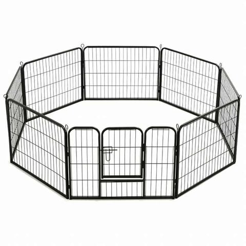 vidaXL 犬用プレイサークル パネル8枚 スチール製 80×60cm ブラック動物&ペット用品 ペット用品 犬用品 犬小屋・ドッグラン