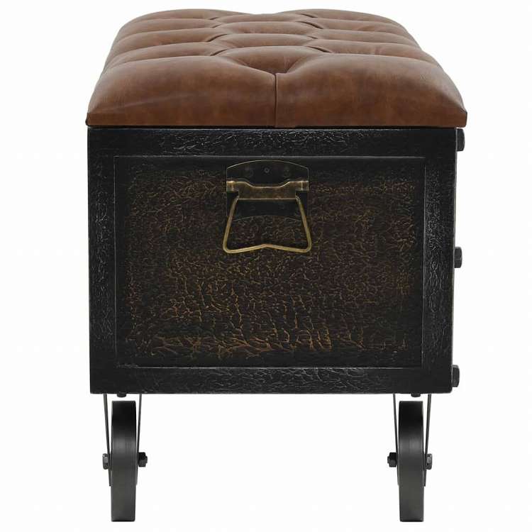 vidaXL 収納ベンチ 無垢材&合成皮革 80.5x41x50cm家具 ベンチ 倉庫・通路用ベンチ