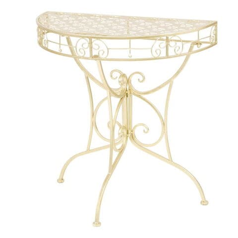 鉢植えや花瓶などを飾るのに理想的な半円形のサイドテーブル。印象的なデザインで、実用的なだけでなく、インテリアのアクセントにもなります。サイドテーブルにはアンティーク調のディテールが施され、優雅な雰囲気を演出します。組み立てが簡単なアイテムです。注意:家具転倒防止のため、付属のアタッチメントを必ず壁に取り付けてください。