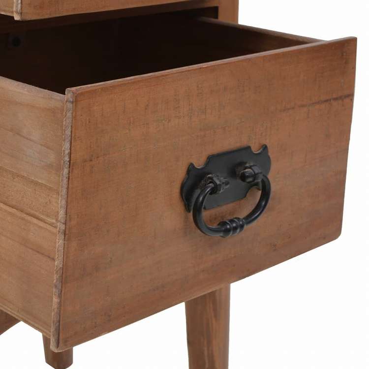 ■このクラシックスタイルの木製ベッドサイドキャビネットは、お家をお洒落に彩ります。ナイトテーブル、エンドテーブル、サイドボードとしても使用可能です。 安定性と耐久性に優れた、素朴なサイドテーブル。無垢のモミ材でできており、ヴィンテージの魅力を醸し出しています。頑丈なトップと引き出しが2段あり、本、メガネ、リモコンなど、幅広いアイテムを手の届く範囲に、きちんと整理して収納するスペースを十分備えています。 このベッドサイドキャビネットは組み立て簡単です。