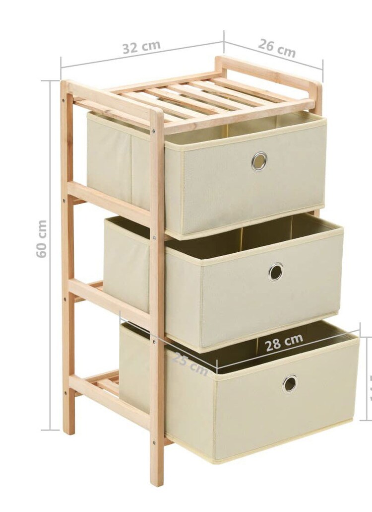 vidaXL 収納ラック 布製バスケット3点付き 杉 ベージュ 家具 キャビネット 収納 収納キャビネット ロッカー