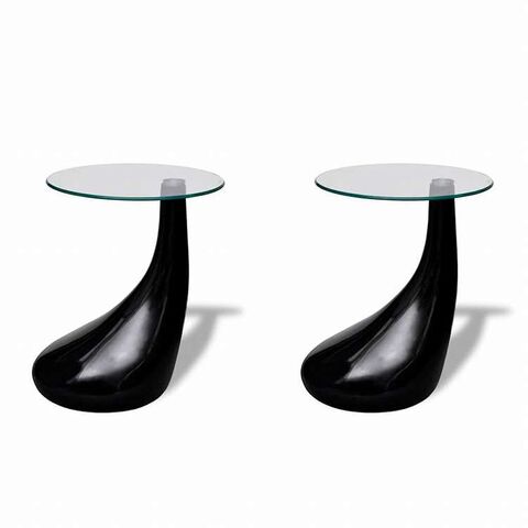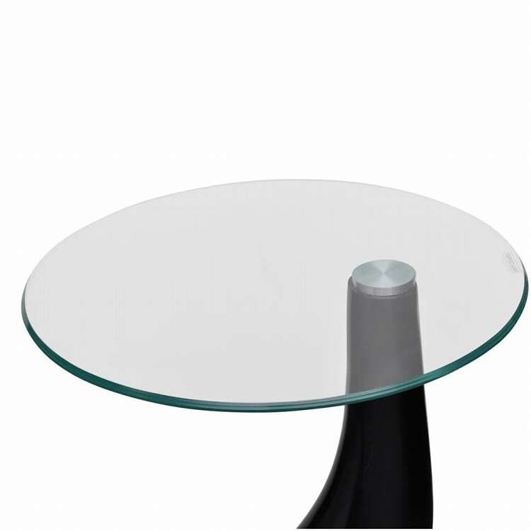 ■この小サイズのコーヒーテーブル/サイドテーブルセットは、リビングスペースのインテリアを惹き立てる、ゴージャスなデザインが印象的です。 ハイグロスブラック仕上げのユニークな水滴形のベースは、テーブルにシックな印象を与えます。リビングのソファやカウチの横に置いたり、寝室のエンドテーブルとしても大活躍。飲み物など、手が届く範囲にあると嬉しいアイテムを置いておくのに便利です。テーブルトップは強化ガラス製です。