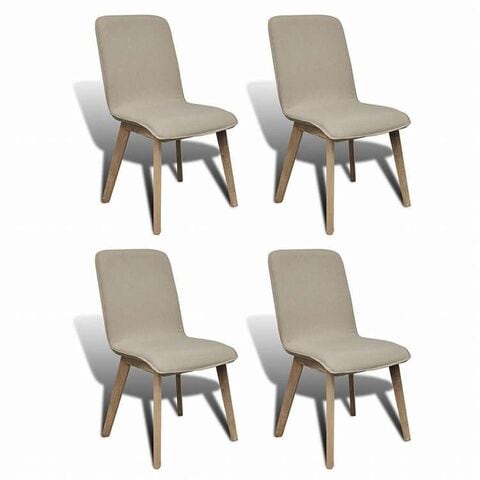 vidaXL ダイニングチェア 4点セット ベージュ ファブリック&オーク無垢材家具 チェア キッチン・ダイニングルームチェア