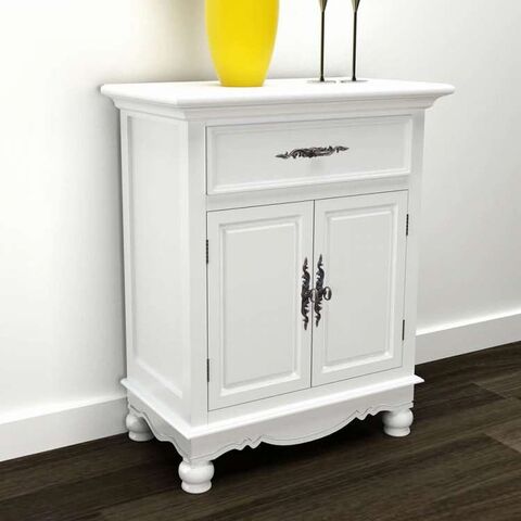 vidaXL 木製キャビネット 2ドア 引き出し1段付き ホワイト家具 キャビネット&収納 サイドボード