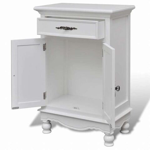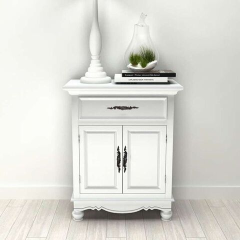■アンティーク調でエレガントな床置きキャビネットは、ドア2点と引き出し1点を備えており、収納スペースたっぷり。持ち物をきちんと整理するのに役立ちます。寝室、キッチン、バスルームなど、どんなお部屋にもぴったり。 引き出しは開きやすく、必要なものをすぐに取り出せます。頑丈なMDFとパインウッドでできており、キャビネットは日常使いに耐えうる耐久性に優れています。白い塗装仕上げだから、湿った布でさっと一拭きと、お手入れ簡単楽々。