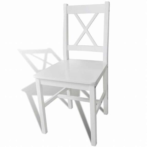 vidaXL ダイニングチェア 2点 マツ材 ホワイト家具 チェア キッチン・ダイニングルームチェア
