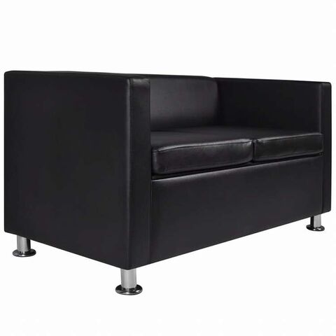 vidaXL 2人掛けソファ 合成皮革製 ブラック家具 ソファ