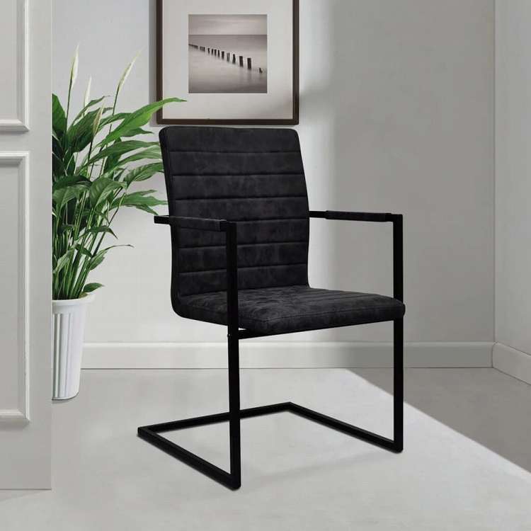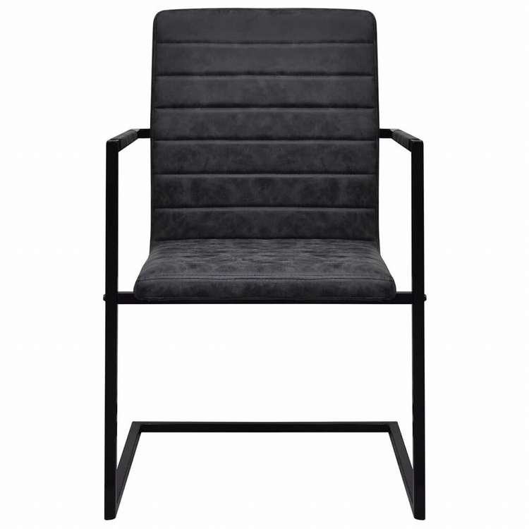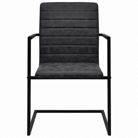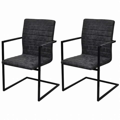 vidaXL カンチレバーダイニングチェア 2点セット ブラック 合成皮革製家具 チェア キッチン・ダイニングルームチェア